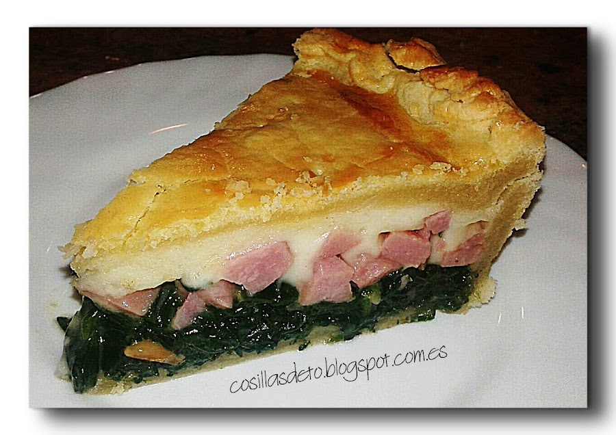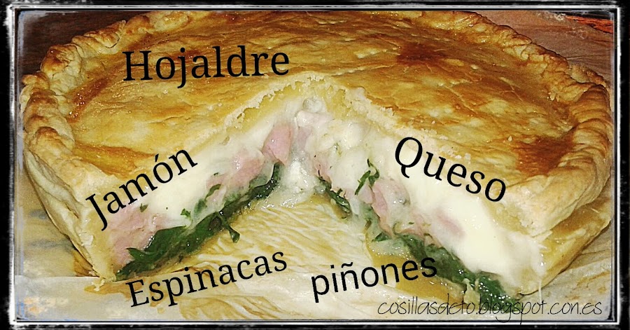primero las espinacas , después los taquitos de jamón y a continuación la mezcla de nuestros tres quesos preferidos.