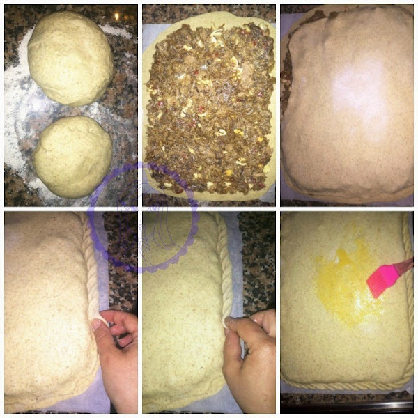 Una vez esté cerrada ponla sobre la bandeja en la que la vayas a cocer, píntala con huevo batido, dale unos pequeños cortes con una tijera y métela en el horno precalentado a 180º durante unos 30-35 min.