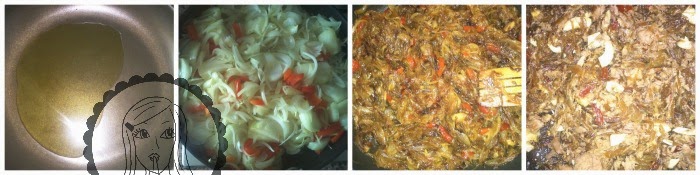 En una sartén antiadherente pon un chorro generoso de aceite de oliva y echa la cebolla junto con el pimiento, deja que se vayan haciendo a fuego medio o bajo, a mí me gusta la cebolla muy pochada (para que no me repita) por lo que dejo que se haga durante 1 hora a fuego lento.
