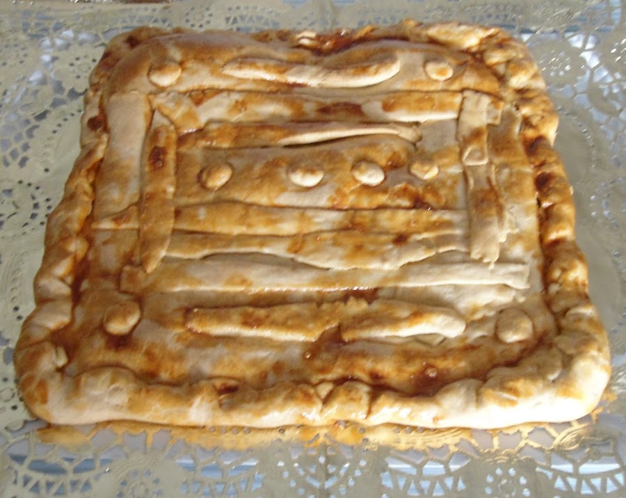 Extendemos la masa y echamos la mezcla encima, cubrimos con la otra capa de masa, pintamos con huevo batido e introducimos la empanada en el horno hasta que se dore, unos 20 o 25 minutos a 180º según horno y listo.