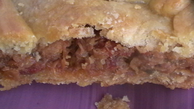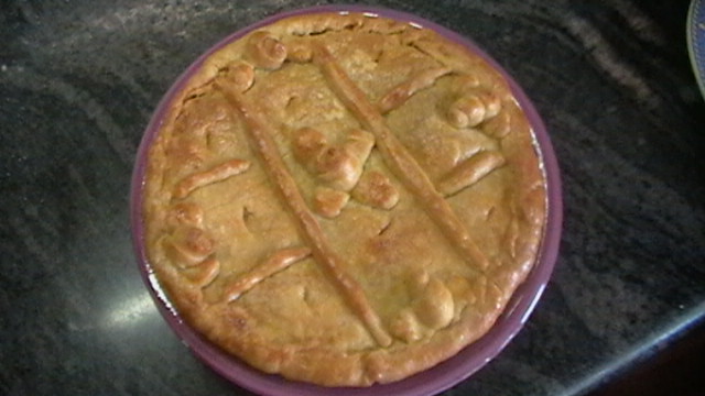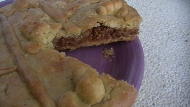 Tomamos la masa y la partimos en dos, dejando una parte algo más grande que la otra, cogemos la grande y la extendemos con ayuda del rodillo, cogemos una bandeja de horno o un molde y lo forramos de papel de horno, ponemos la masa extendida, colocaremos el relleno y extenderamos bien, cogemos la otra parte de la masa, que tambien apartaremos un poco, la extendemos y cubriremos el relleno, los bordes, los enrollaremos que parezca un cordon, con el poquito de masa decoraremos, haciendo flores, hojas y enrejados, realizamos unos agujeritos y pintamos con la yema de huevo, precalentamos el horno a 180º, ponemos la empanada unos 30/40 minutos, que tome un bonito color dorado, sacamos y degustamos, a mi personalmente me gusta fria, bueno del tiempo no de la nevera........ no esta mal, no, para ser la primera que hago!!!!!!!!!!!!!!