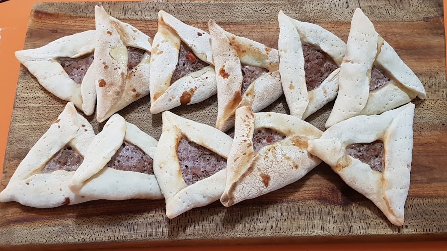 12. Cierra la masa dándole una forma triangular y coloca las empanadas árabes en una bandeja enharinada.