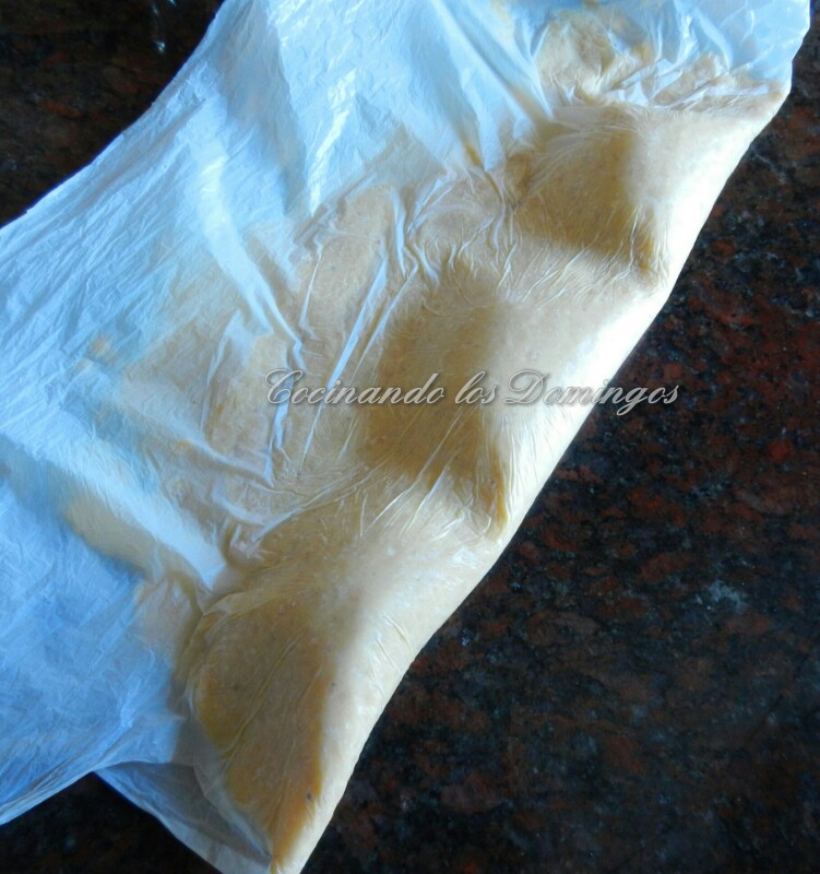 Ponemos la masa dentro de un plástico y se pasa el rodillo, hasta que tenga un espesor de 2 a 3mm aproximadamente.
