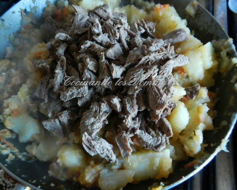 Incorporar la carne. Si van a preparar empanadas vegetarianas, omitan este paso ;-)