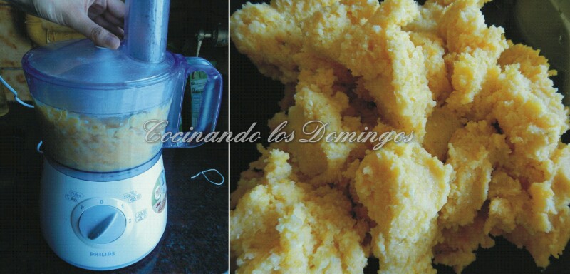 Sacarmos el agua y lo echamos en un procesador de alimentos, procesamos en nivel 1 hasta que se deshagan los granos y se forme una masa homogenea.