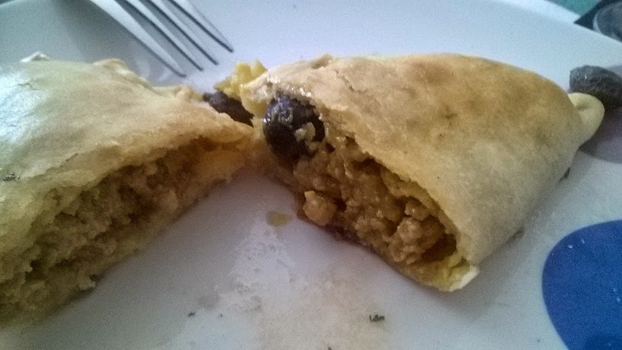 El relleno sí ha sido cosecha mía, pues es "casi" el típico relleno que utilizamos en Chile, pero con algunas pequeñas variaciones, especialmente en la carne, pues utilicé una bandeja de carne picada de ternera y cerdo. En chile se usa sólo ternera.