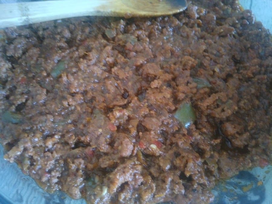 Cuando pite, despresurizamos manualmente, incorporamos las especias, removemos bien, y en menú plancha dejamos que evapore parte del jugo. Dejamos enfríar.