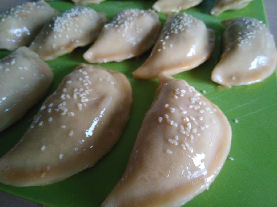 Una vez las tengamos todas, pincelamos con huevo batido, y si lo deseamos, adornamos con unas semillas de sesamo.