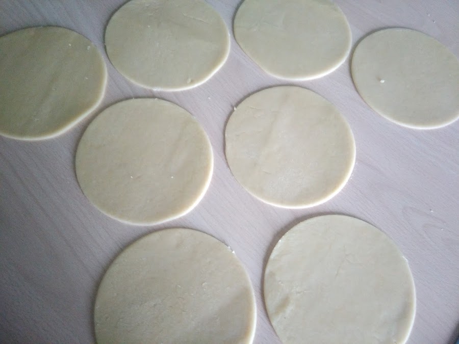Procedemos a cortar los discos: yo utilizo un molde de empanadas.