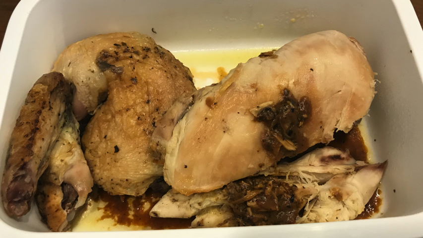 Añade un poco de caldo de pollo para que esté jugoso.