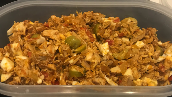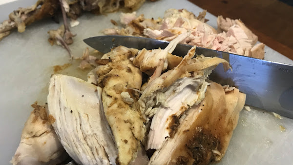 Limpia el pollo de huesos, cartílagos y piel. Desmenúzalo.