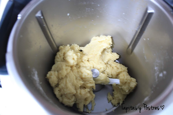 Sacamos la masa, hacemos una bola. La liamos en film transparente y la dejamos ene la nevera media hora.