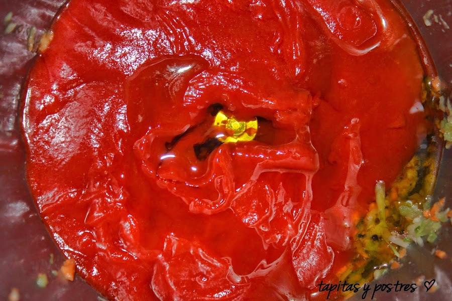 Añadimos el tomate y mezclamos 5 segundos a velocidad 4.