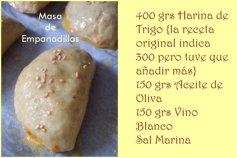 La receta de la masa es de un blog que sigo, que me gusta mucho y que conoceréis: Una mariposa en mi cocina . Pasaros por allí, ya veréis qué cosas más ricas hace marijose, y como buena gallega, las empanadas y a sus primas pequeñas, las empanadillas, las borda.