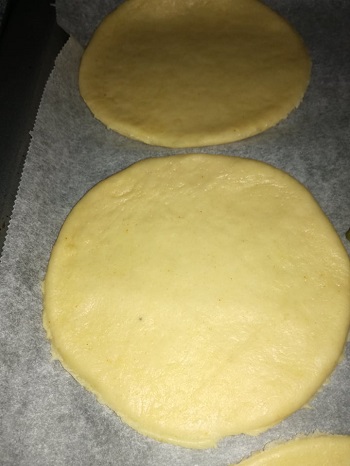 Pasado el tiempo, colocamos papel de horno y encima la masa.