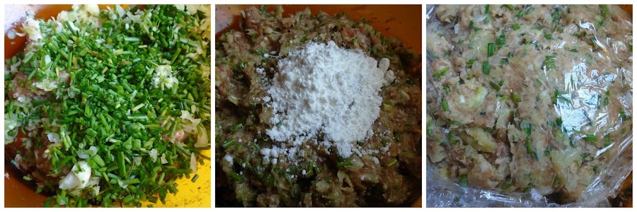 En un bol ponemos la carne picada de cerdo, añadimos la salsa de soja, el aceite, el vino blanco y lo mezclamos muy bien hasta que la carne se ponga pastosa.