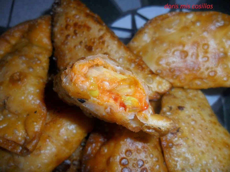 Mojamos el contorno de cada empanadilla con agua y cerramos acompañándonos de un tenedor pequeño.