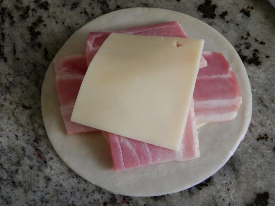 Colocamos encima de esto otra media loncha de bacon