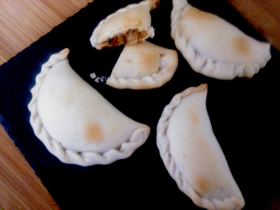 Las auténticas llevan de relleno carne picada, aceitunas verdes, huevo duro, tomate y cebolla, pero bueno mi versión os aseguro que también esta de escándalo y lo mejor es que le podéis meter cualquier resto de carne o verdura que tengáis por casa. Eso si he sido fiel al famoso repulgue y a incorporar manteca de cerdo en la elaboración de la masa.