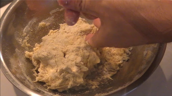 Mezcla la harina con los líquidos y la sal (en proporción 10 de harina : 6 de líquidos) hasta hacer una bola de masa.