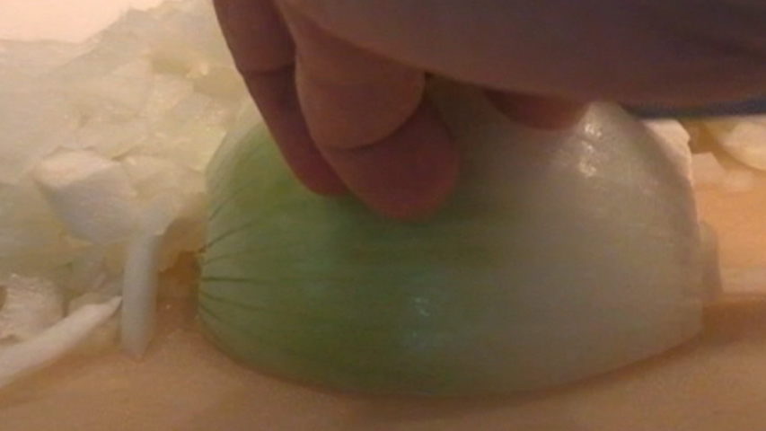 Pela la cebolla y córtala en trocitos pequeños.