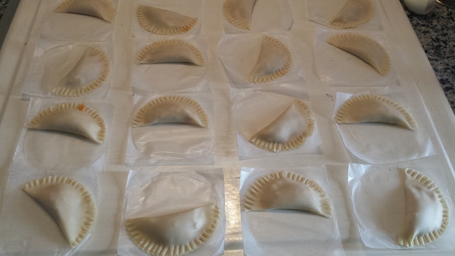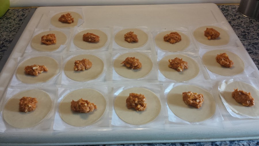 No hay que poner demasiada cantidad ya que al cerrar las empanadillas se nos saldrá parte de la mezcla por los bordes.