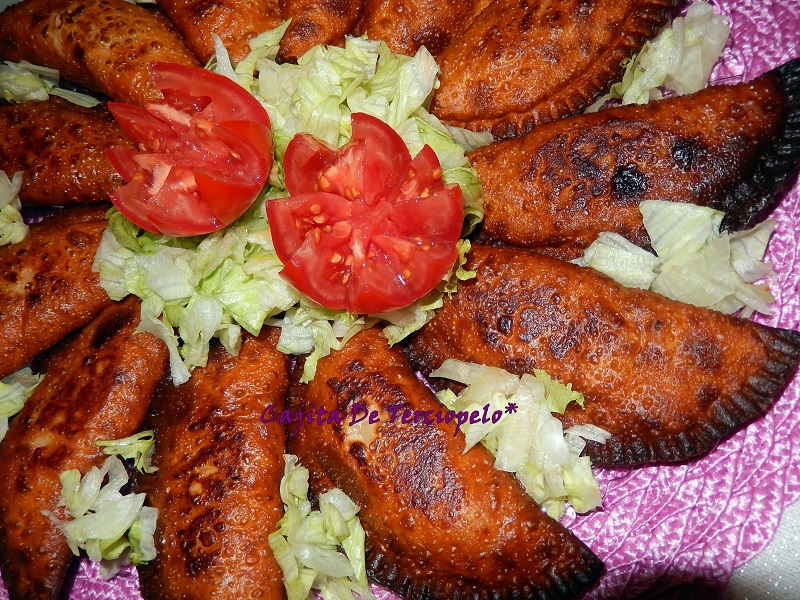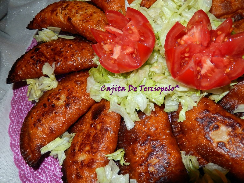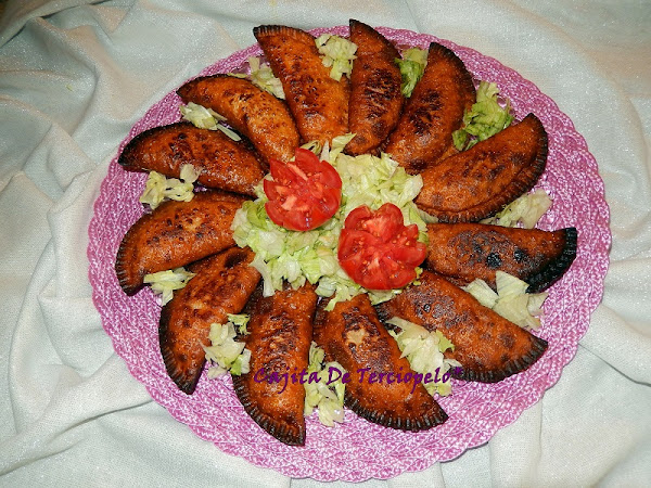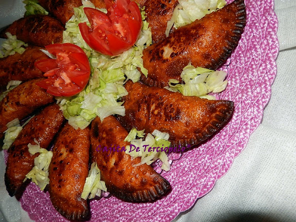 Las empanadillas ya están hechas.Presentarlas en una fuente con un poco de lechuga y tomate.