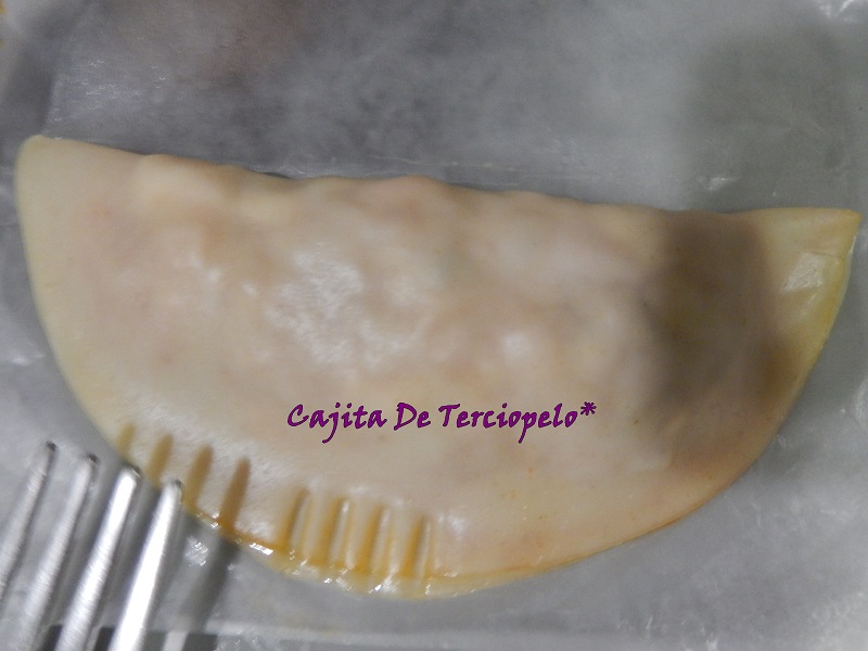Las cerramos. Echamos la parte de atrás hacia adelante y primero apretamos con los dedos todo el borde de la oblea y luego vamos sellando con un tenedor. Una vez selladas apretamos un poco con la mano para que se reparta bien la masa.