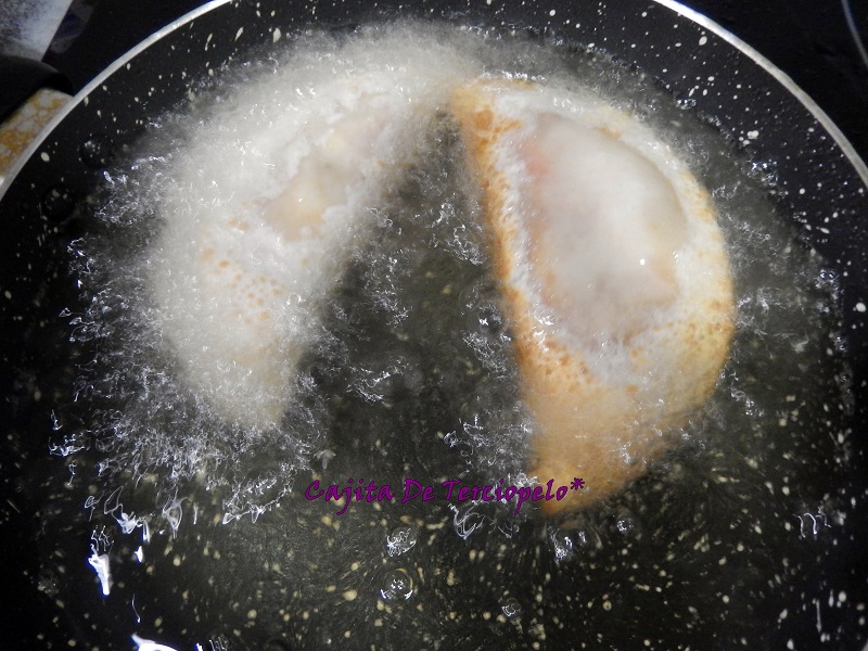 Las ponemos a freír en abundante aceite. Casi os digo para las que no las hayáis hecho nunca que las vigiléis porque se fríen muy rápido. A mí alguna como siempre estoy haciendo cuatro cosas a la vez, se me tostó demasiado, pero esas....para la cocinera, jaja.