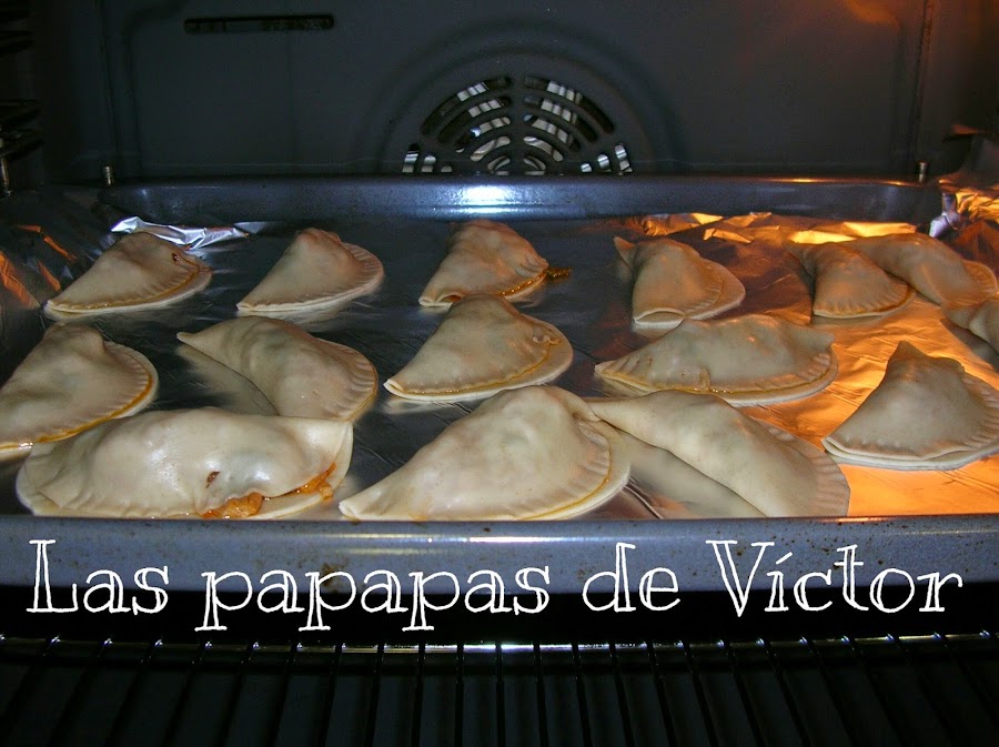 Sacar las obleas y disponerlas en fila e ir cogiendo porciones de cuchara de relleno, tapar y sellar con un tenedor y si se prefiere pintar con huevo batido para dar color