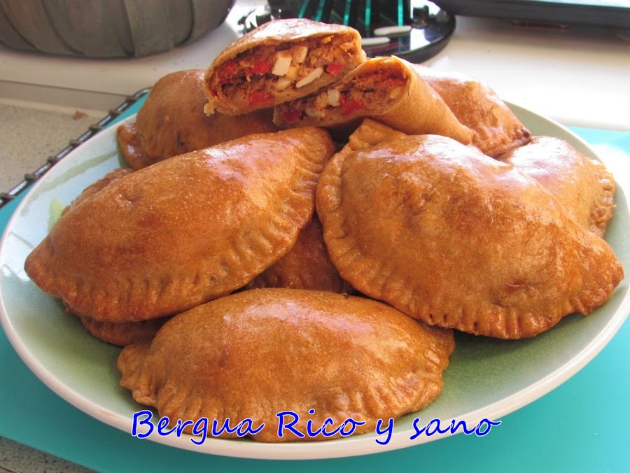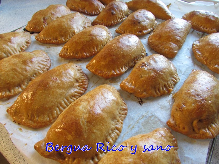 De vez en cuando hago una remesa de empanadillas inspiradas en las empanadas de mi Vega Baja. Durante mucho tiempo, cada vez probaba a cambiar un poco la receta de la masa, para ver si algún día daba con la fórmula que me conquiste. Por el camino, entre prueba y prueba, he conseguido buenos resultados con masas muy sencillas de hacer, sin levadura ni tiempos de espera. Las he probado con vino blanco, con cerveza, con aceite, con mantequilla, con amasado a mano y a máquina... Y de todas esas, esta es una de mis dos favoritas. Mi otra favorita es una masa de empanadilla tipo quebrada y podréis verla aquí muy pronto.