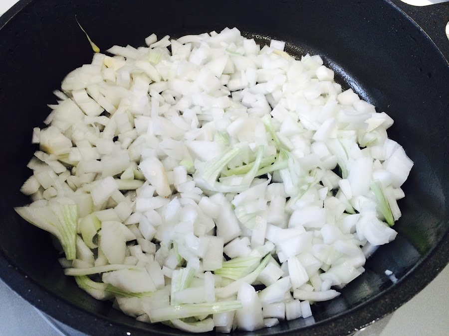 El secreto como en la mayoría de platos de cocina es en hacer un buen sofrito con mucho tiempo y con mucha paciencia.