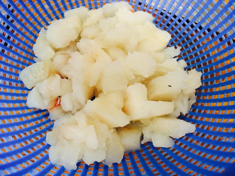 Cortamos el bacalao en trozos pequeños.