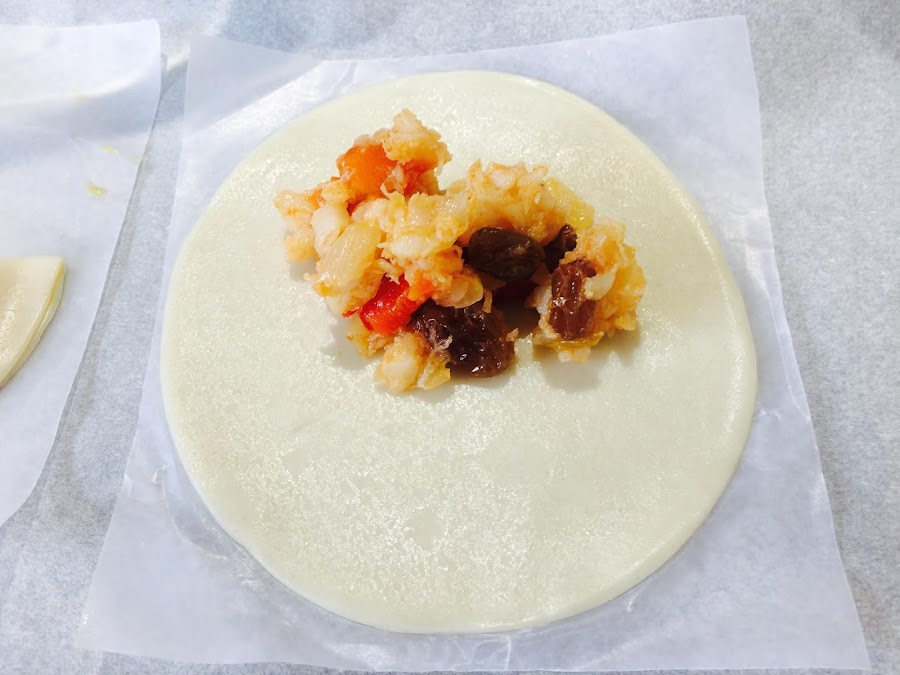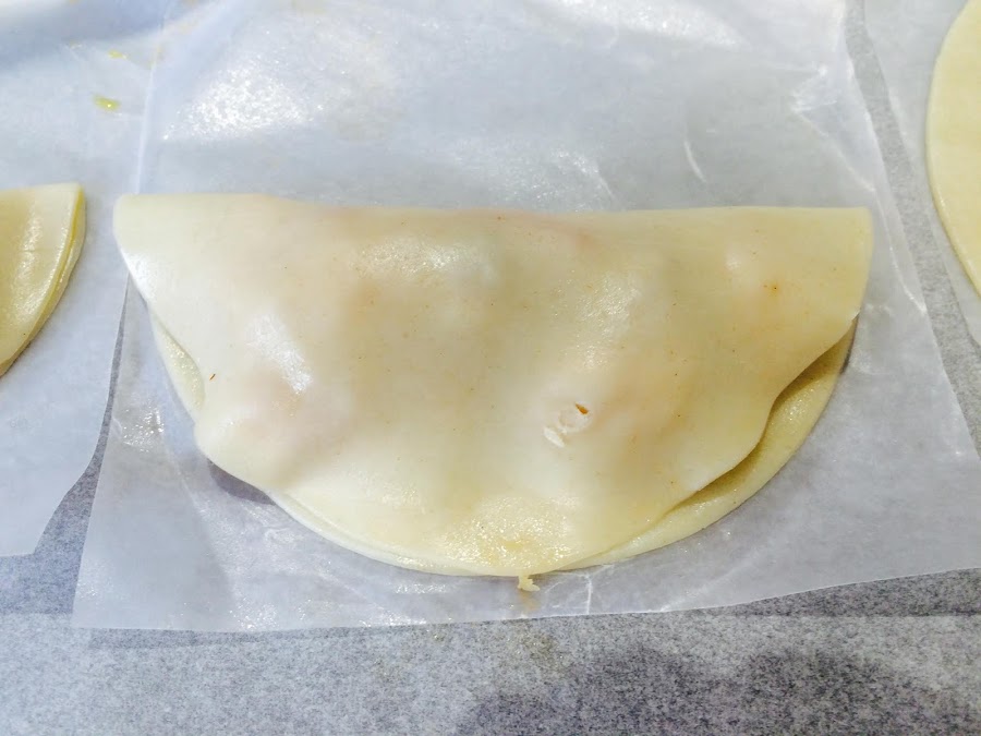 Tapamos el relleno con la otra mitad de masa hasta quedar media luna.