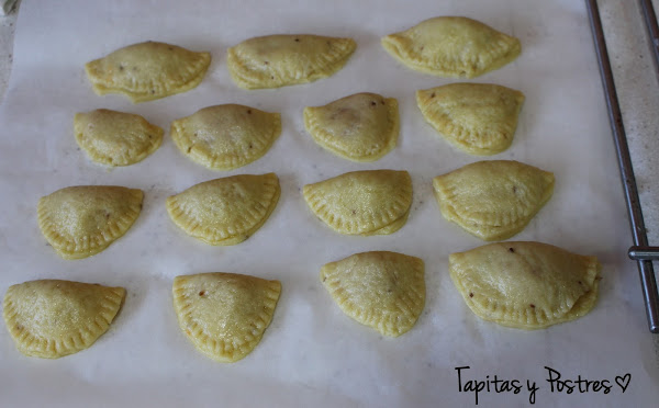 Cerramos las empanadillas y con un tenedor le hacemos muescas en los bordes para que no se abran.