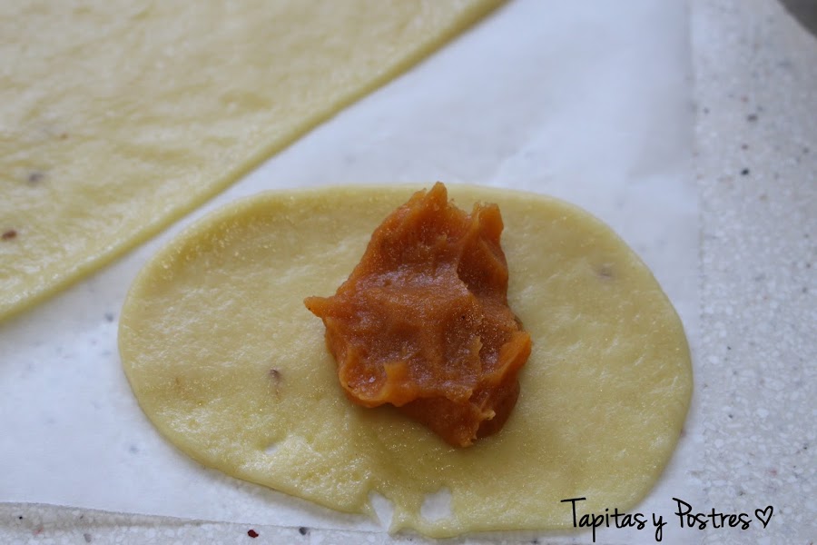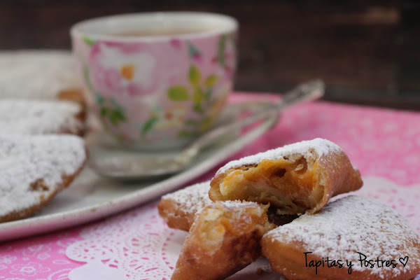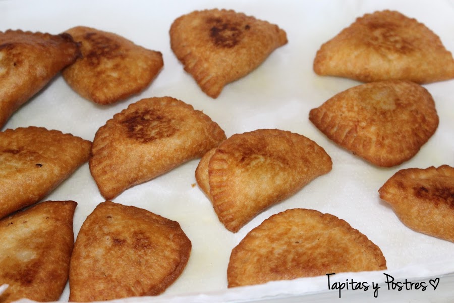 La masa de estas empanadillas es mas crujiente, muy rica y el relleno ya no os digo nada, dulce y cremoso. Todo un manjar.
