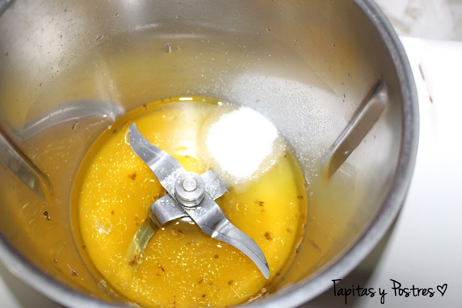 Agregamos el zumo de naranja, la sal y el azúcar.