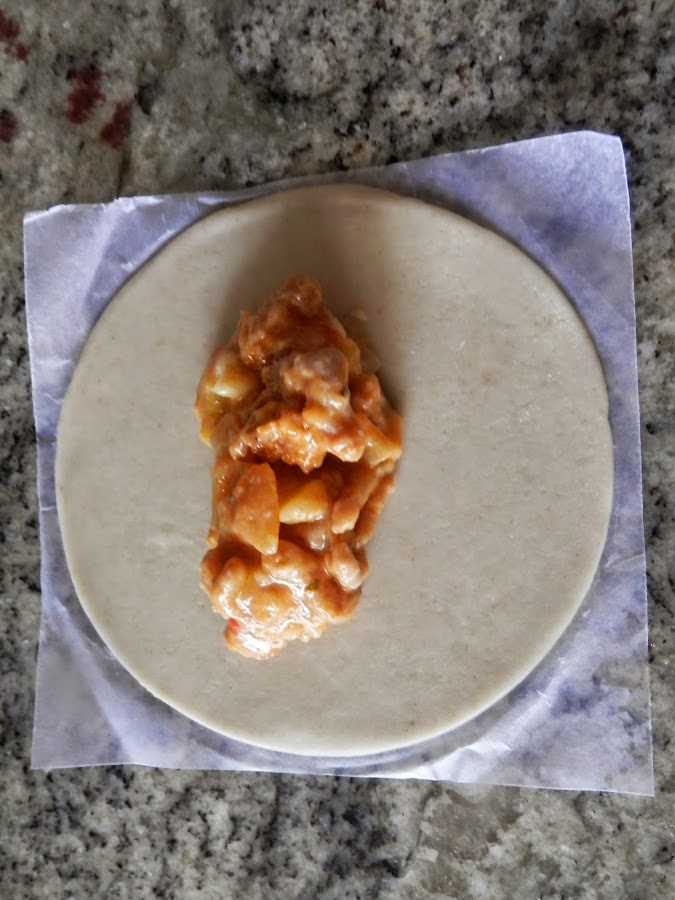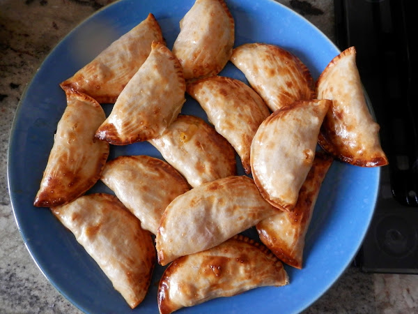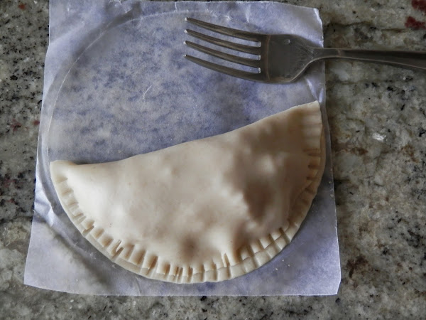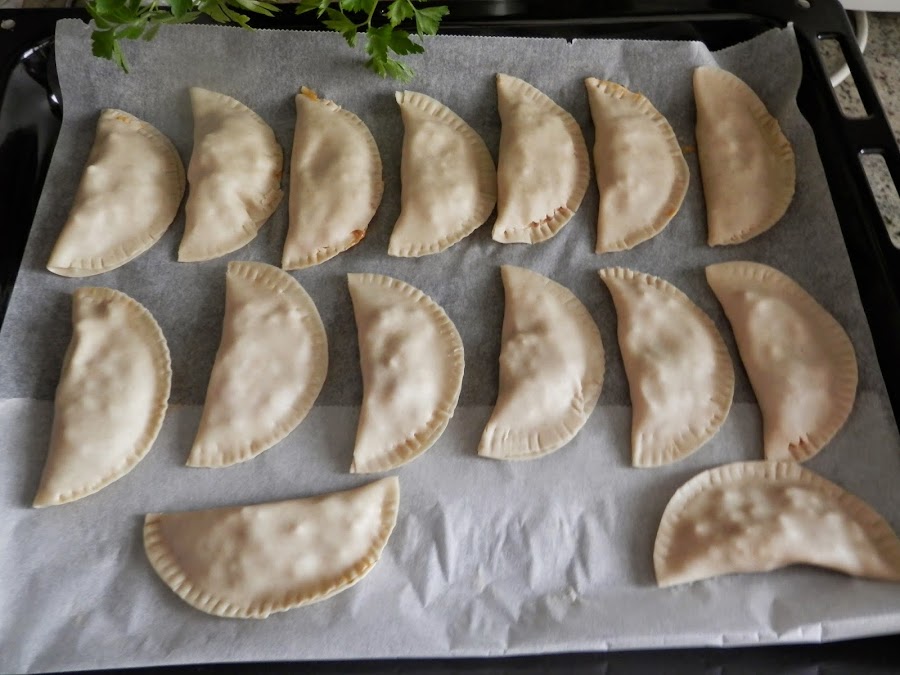 Las doblamos sobre sí mismas y cerramos con la ayuda de un tenedor, sellando bien los bordes para que no se salga el relleno.