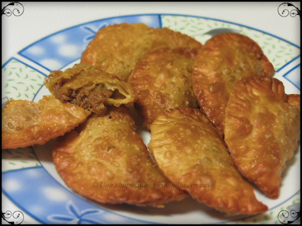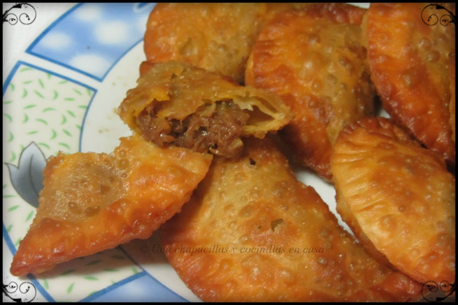 A esta receta la tengo especial cariño porque son las empanadillas que me preparaba mi abuela cuando era pequeña, usaba la carne del zancarrón que había usado para el cocido y con pocos ingredientes mas y la masa de empanadillas de toda la vida le quedaban buenísimas, ¡ay! que recuerdos..., yo siempre detrás de ella mientras preparaba la comida y en concreto cuando preparaba las empanadillas, yo la ayudaba a cerrarlas con el tenedor y de mientras me iba comiendo cachitos de carne jajaja.