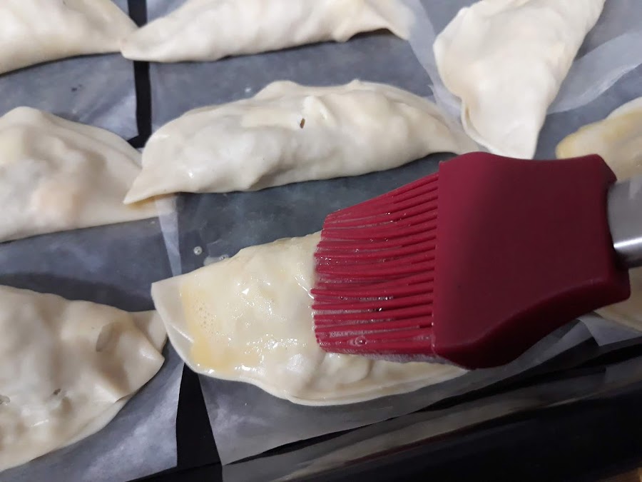 8.- Rellenamos las obleas y las pintamos con huevo batido.