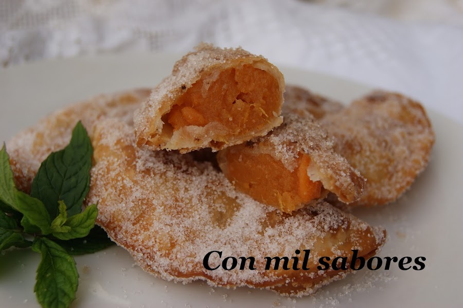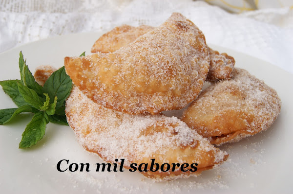 Ponemos el aceite a calentar y cuando esté en su punto vamos friendo las empanadillas. Las sacamos y las emborrizamos con azúcar y canela.La mejor forma de disfrutar de los productos de temporada.
