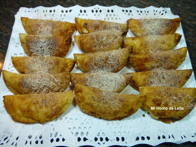 Mezclamos la azúcar glass y la canela, la ponemos en un colador y con pequeños golpecitos al colador vamos echando la mezcla sobre las empanadillas.
