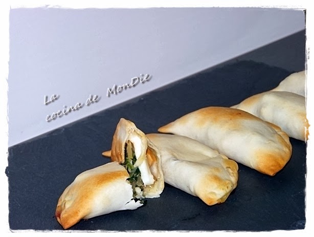 Con la mezcla rellenar las obleas y poner un trozo generoso de queso fresco, cerrar las empanadillas sellar bien los bordes, hacer del mismo modo todas las empanadillas y colocar en la bandeja del horno con papel vegetal, pulverizar o pintar con un poco de aceite de oliva, poner en el horno y a 250º cocinar hasta que estén bien doradas, se hacen bastante rápido a si que estar pendientes no sea que se quemen.