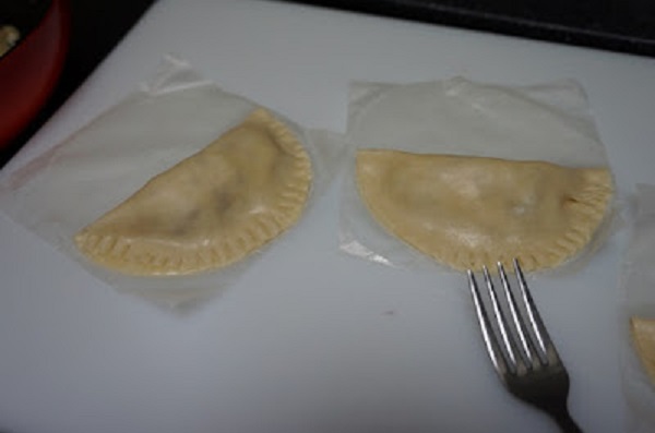 Ahora doblaremos la empanadillas y sellamos con ayuda de un tenedor los bordes. Podéis dar forma de paquete y así hacerlas diferentes.