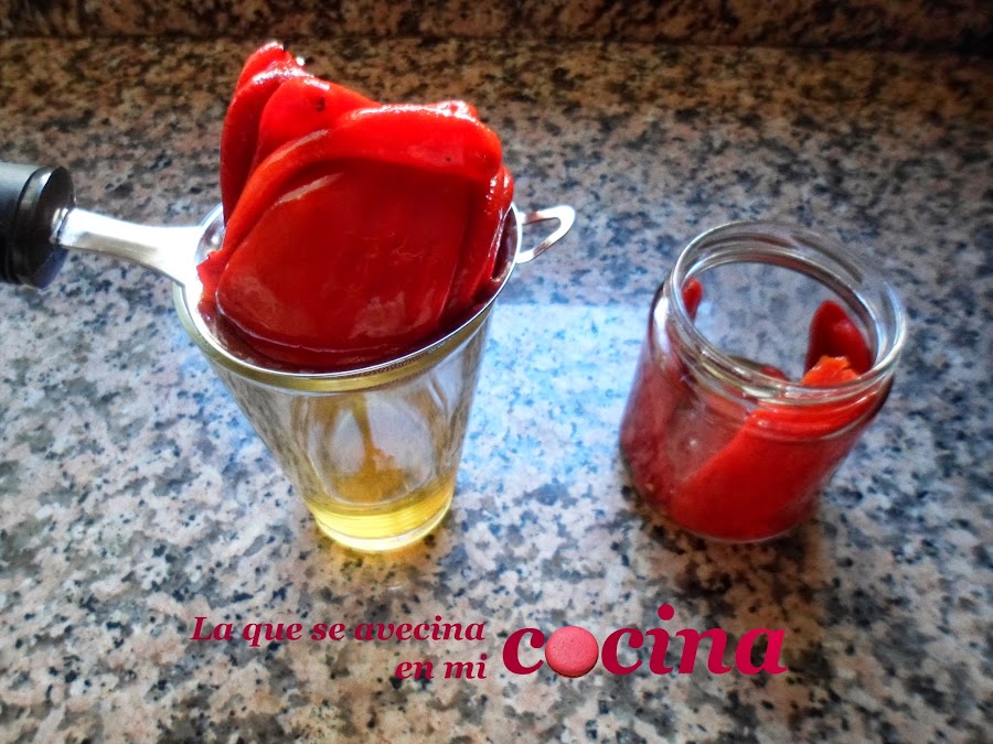 Colamos los pimientos para quitarle el caldo.