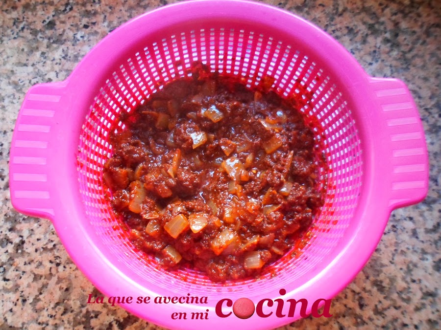 Escurrimos el relleno para quitar el exceso de líquido.