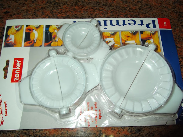 Hoy os voy a enseñar un nuevo utensilio que me compré para cerrar las empanadillas, en realidad es una tontería, ya que con un tenedor se cierran mejor que con este artilugio, pero bueno si decidís vosotros hacer la masa en vez de comprarla os sirve para darle forma.