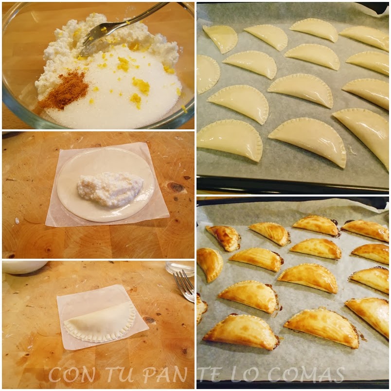 Son unas empanadillas clásicas, rellenas de requesón que le gustan a todo el mundo (a todo el mundo que le guste el requesón) y que están muy ricas.