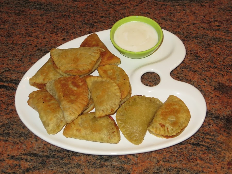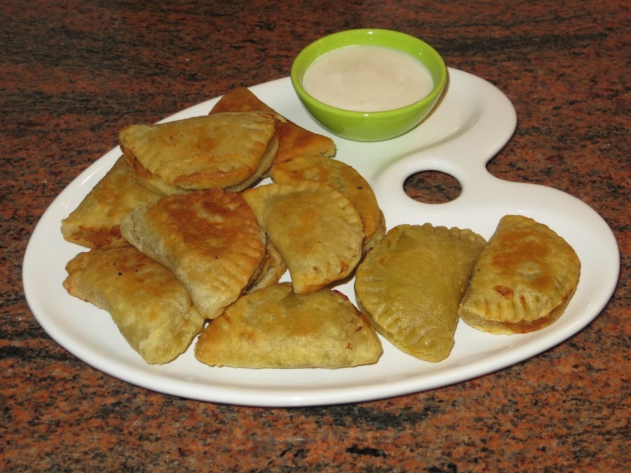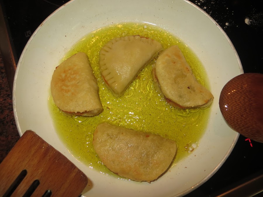 Ponéis aceite a una sartén y cuando esté caliente vais echando las empanadillas en varias tandas, que no se solapen unas con otras. Las sacáis a un plato con papel absorbente para quitar el exceso de aceite y a comer.