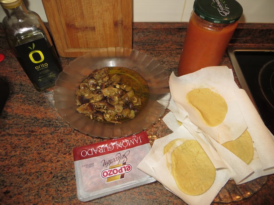 Cogemos la masa de empanadillas puede ser elaborada en casa, que sabrá más a pan, o comprarla en el supermercado en la zona de refrigerados, untáis un poco de tomate frito casero en la base, si el tomate no es casero que sea frito, eso sí para darle mayor gusto a la empanadillas yo le añadiría entonces algún trozo de cebolla o pimiento.